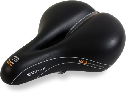 This saddle is a “gel saddle” and maximizes comfort.  I highly recommend this, or similar, saddle if you are starting out.