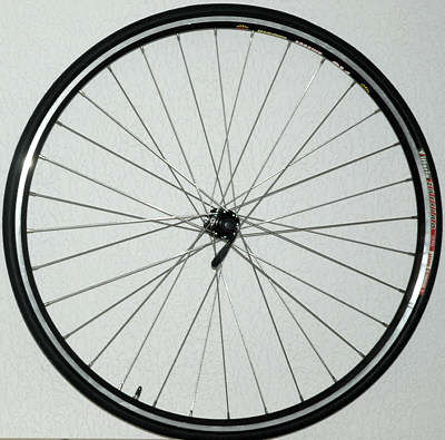Bicycle wheels, like frames, come in many styles.  The above is the most common.  But these days, wheels are measure not only by rim diameters, 26 inches being the most common, but wheel width.  (see below)