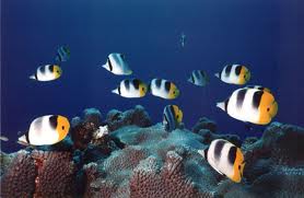 There is an almost endless variety of fish that live in the reef.  The following picture shows some of them and as with the reef, the picture does not do justice to how colorful they are.